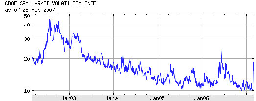 Enter the bears. You want an explanation for why the market went down? Econobloggers from Roubini to Ritholtz to Baker have been telling you for months why the market should be going down! It all starts with the housing market: homebuilders have stopped building homes, which means that manufacturers have had to stop making stuff for all those homes, and that both the building and manufacturing industries are in recession. And given the huge rise in employment in those industries of late, it stands to reason that there’s going to be a pretty big fall in employment in those industries pretty soon. Meanwhile, suppliers of mortgages have stopped writing the crazy mortgages that were driving the housing industry, which means that it’s harder to buy a house than it used to be, and that prices have stopped rising and in fact have started falling in many areas. Because those crazy mortgages are no longer available, people who have them can’t refinance, and are defaulting in unprecedented numbers — which means their homes coming back on the market, which only serves to make the broader housing market worse. And high default rates also hit mortgage-backed securities, which make up a large chunk of the US bond market, raising fears of a credit crunch. Add it all up, and you get Recession — which is more than enough reason for a market “priced for perfection” to fall — and fall a lot.