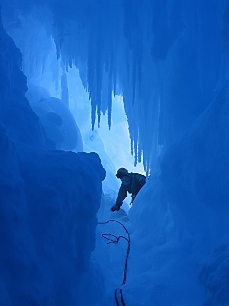 adorning the walls. Snow bridges, hollows, speak as quietly as the blue is gentle