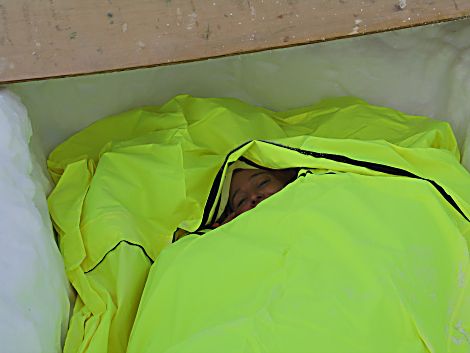 friend, you stamp two ice stakes in the ground (tricky when you’re lying